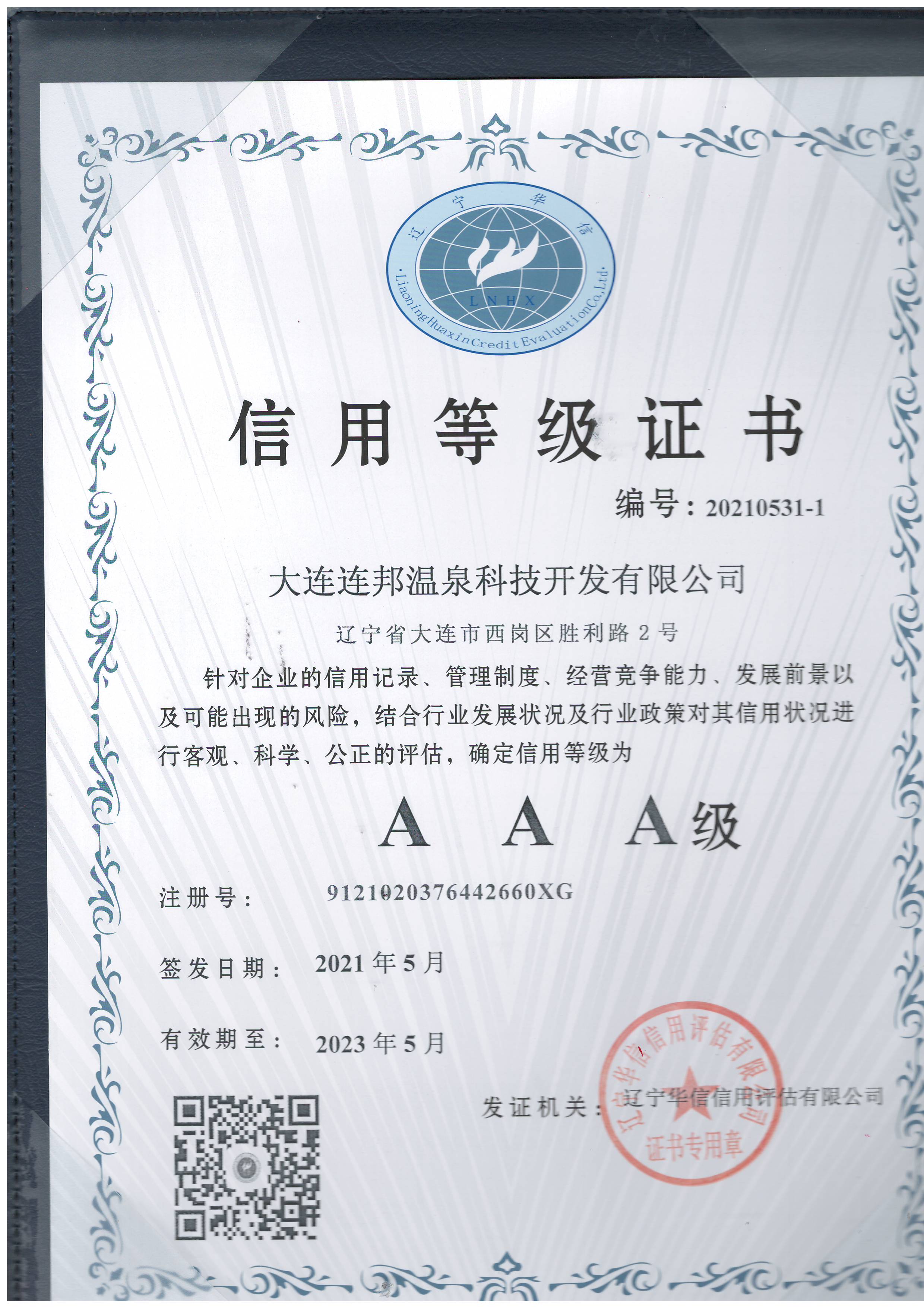 連邦溫泉榮獲AAA級(jí)信用企業(yè)等級(jí)證書