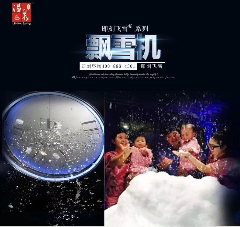 特 點(diǎn):在任何季節(jié)、任何溫度、任何空間、都能打造逼真自然的飄飄雪花! 即刻飛雪-飄雪機(jī),具有逼真自然、智能系統(tǒng)、一級(jí)能效、精工品質(zhì)、安裝方便、操作簡單等特性。只需接通電源、水源,便可直接投入使用,即刻飄落仿真度極高的人造雪。