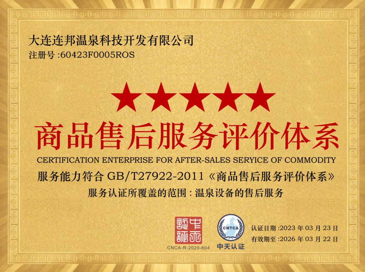 連邦溫泉科技順利通過商品售后服務(wù)體系認(rèn)證(五星級(jí))